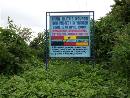 Vor zwei Jahren haben wir in der Pfarrei einen Brunnen gebaut; später haben wir die Finanzierung der katholischen Grundschule übernommen, von der zwei Bauphasen von je zwei Klassenräumen erfolgreich abgeschlossen wurden. Die dritte Bauphase soll in Kürze begonnen werden. Auf Grund unseres Engagements hat der Staat das Dorf elektrifiziert und die Diözese Sunyani eine neue Kirche gebaut; das Pfarrhaus ist im Bau