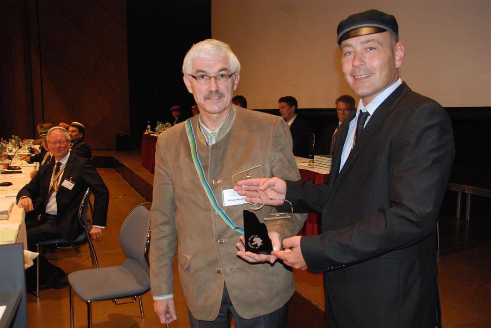 Im Zuge der ersten Tagung am 27. Mai gestattete uns die Cartellversammlung mündliche Vorträge zu unserem schon schriftlich vorliegenden Rechenschaftsberichtes für das Jahr 2015. Im Verlauf des Vortrages wurde es unseres Vorsitzenden Cbr Andreas Neumann ermöglicht unseren CbrCbr Richard Weisskorn Ae! und Johannes Thul Ctr! das Ehrenband der RFN zu verleihen. „Endlich alle Kontinente voll“ lautete der humorvolle Kommentar unseres Cbr Weisskorn. Dass die CV-Afrika-Hilfe die Paul-Etoga-Medaille, als höchste Würdigung der Unterstützung der ehrenamtlichen Tätigkeit des Vereins, nicht mehr fortführen wird, wurde zur Kenntnis genommen. Die neue Pault-Etoga-Stele wurde vorgestellt, vor allem auch die Tatsache, dass sie nur nach einstimmigen Vorstandsvotum maximal zwei Mal pro Jahr, dabei durchnummeriert, ausgelobt wird. Ausgezeichnet mit der Paul-Etog-Stele, laufende Nummer 0001, wurde der Cbr Richard Weisskorn, für seine jahrelange persönliche Unterstützung des Vereins, ausgeführt an einigen wenigen Beispielen. Die CV-Afrika-Hilfe war durch die Vorstandsmitglieder Andreas Neumann, Johannes Thul, Andrea Neumann und Angela Hoenecke vor Ort vertreten. Insgesamt wurden 450 Flyer verteilt und zur Auslage gebracht. Das Afrikafestival wurde abends gesondert besucht, die Flyerverteilung gestaltete sich dort aber sehr schwierig, da die Themenschwerpunkte doch mehr einen Fest- und Musikcharakter hatte.„Was kann der Verein von der diesjährigen CV mit nach Hause nehmen: Wir sind ein Verein in einem Verband, der deutlich zeigt, was Caritas tatsächlich bedeutet. Und sollte der Verband je einen Zeugen dafür brauchen, dann legen wir gerne die Listen der mehrere hunderte Projekte vor, finanziert und umgesetzt durch diverse Cartellbrüder in den letzten 45 Jahren.“ - Bilder der 130. CV auf unserer Facebook Fanpage.