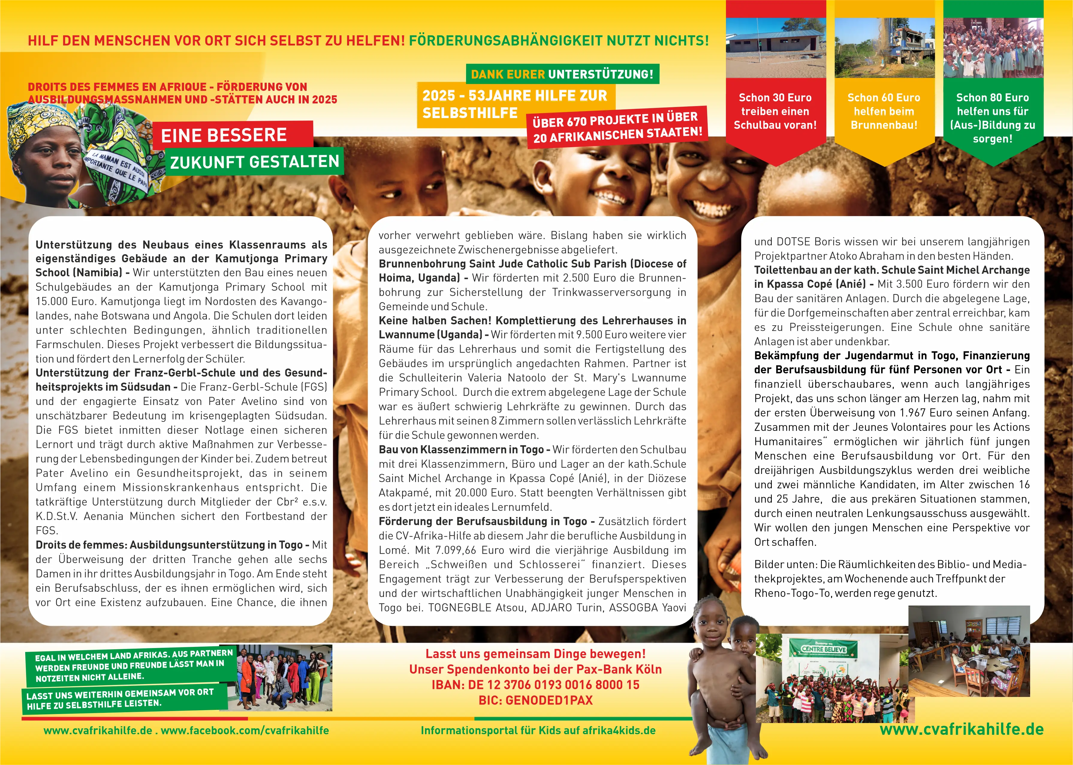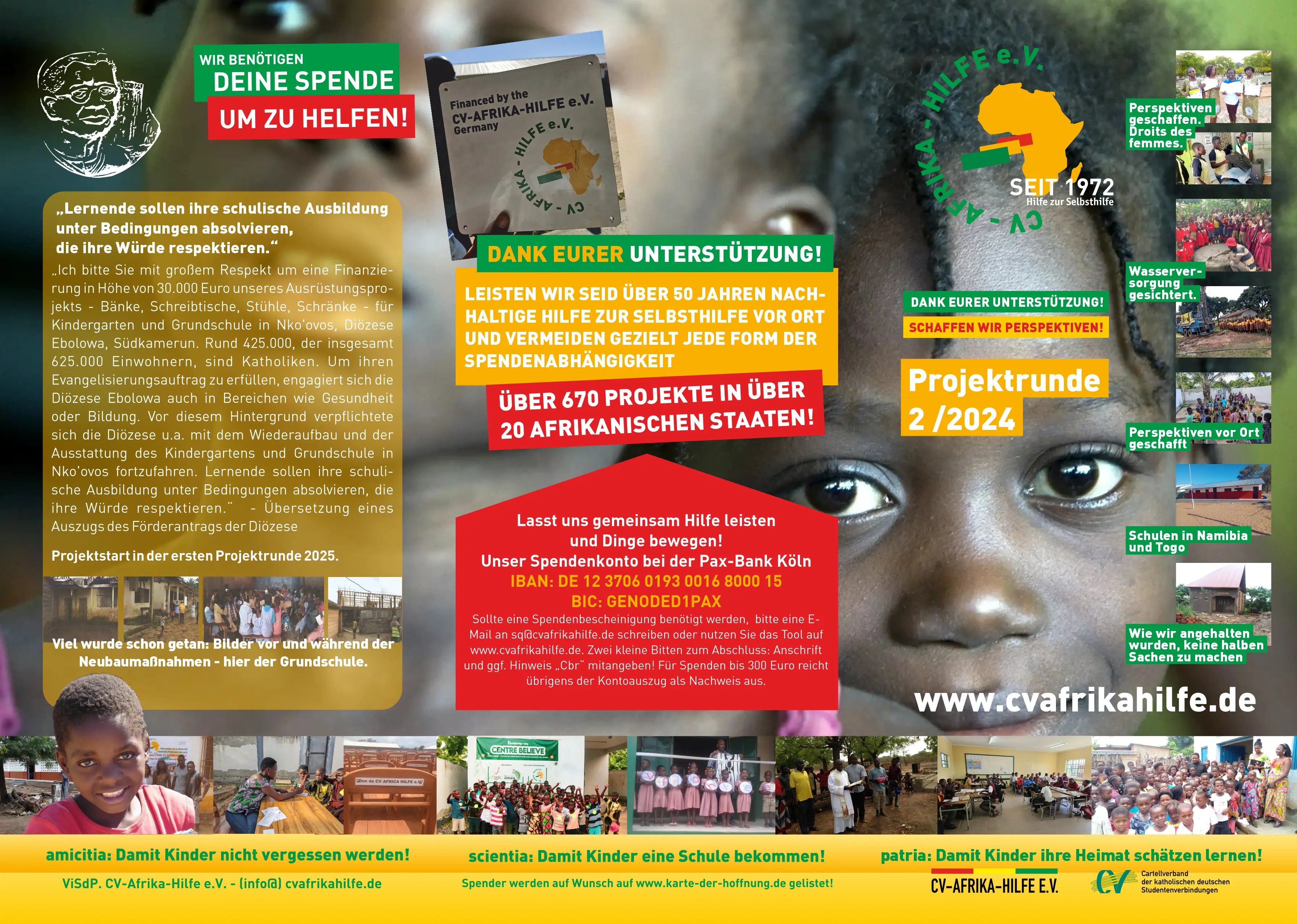 Traditionell versenden wir den Weihnachtsflyer an unsere CbrCbr und auch an Verbindungen zur Auslage. Er gibt einen Kurzüberblick über die Projekte der zweiten Projektrunde eines jeden Jahres.